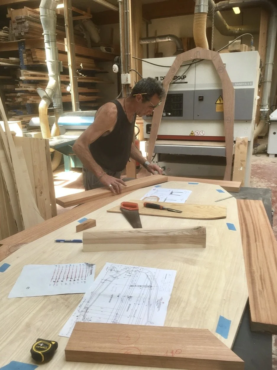 Hiermee doorbrak ik meteen het stereotype van de architect die enkel achter zijn bureau fantaseert. Mijn liefde voor vakwerk groeide zo sterk dat ik een vierjarige avondschool meubelmaken volgde. Daar bloeide mijn passie voor hout en constructie pas echt open. Recent heb ik een vergadertafel nog ontworpen en mee gebouwd in de atelier van Fried Denayer - zie foto rechts.